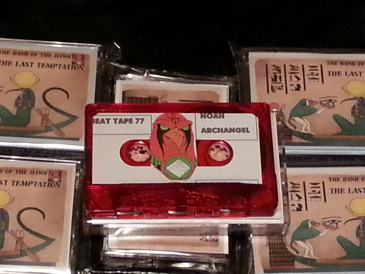 www.bandofthehawk.com This is a 110 minute Red tinted cassette with the new album The Last Temptation on Side A and Noah Archangel's Beat Tape #77 on Side B. You get a instant download with purchase #BOHUP.